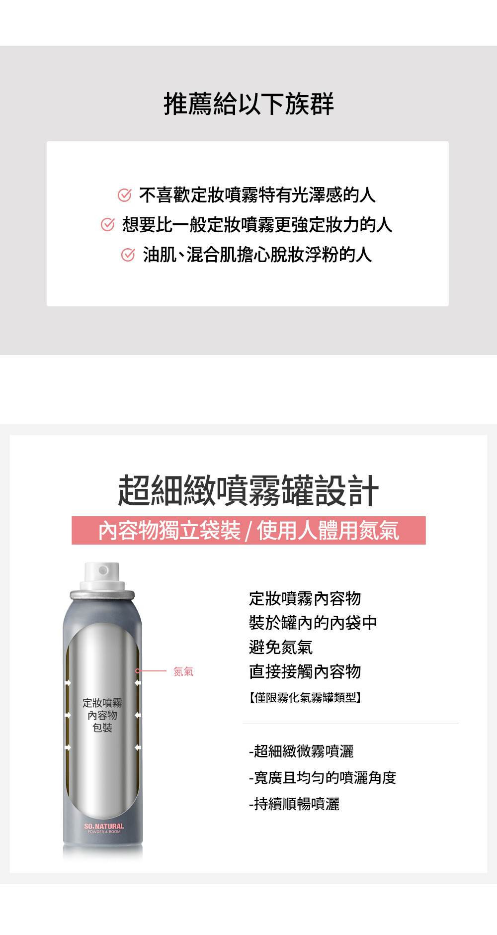 • 噴霧過程無間斷、均勻細緻霧狀噴灑,零死角定妝