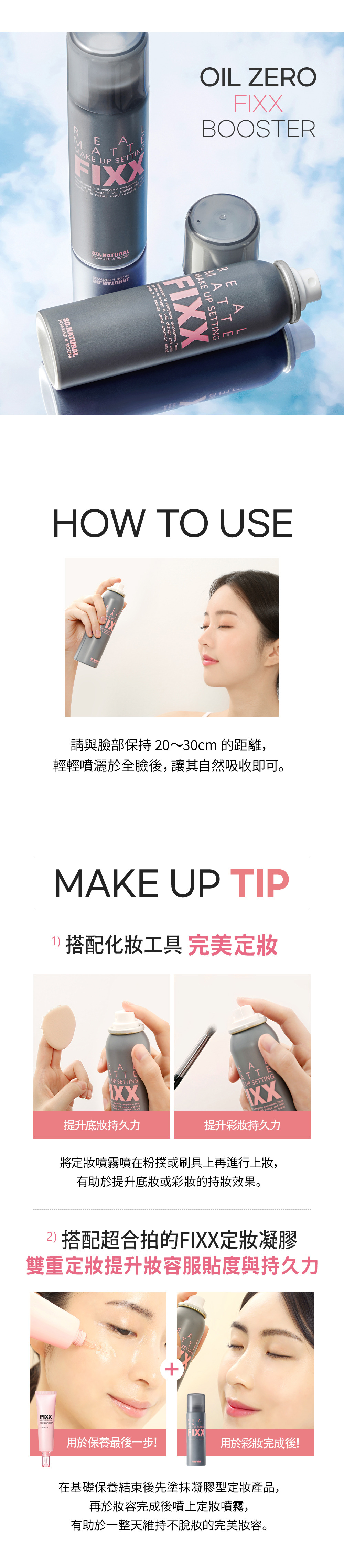 • 細緻噴霧不破壞妝容、快乾成膜,不卡粉、不悶