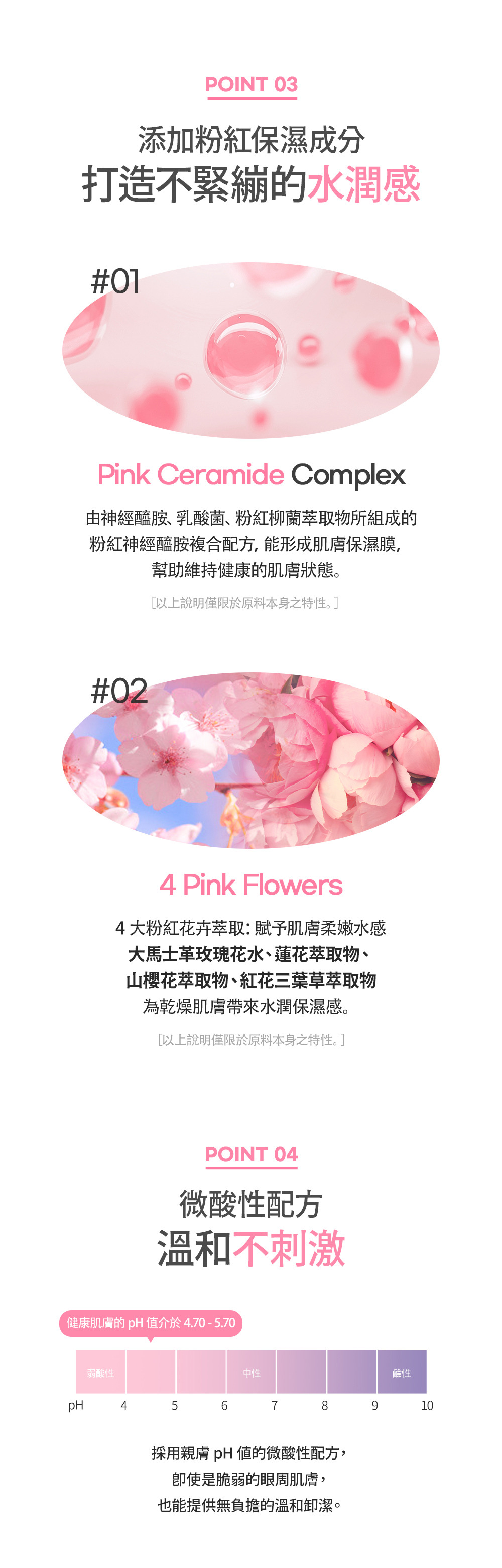 • 採用最接近淚液與健康肌膚的 pH 值,溫和不熏眼,即使是敏感肌也能安心使用。